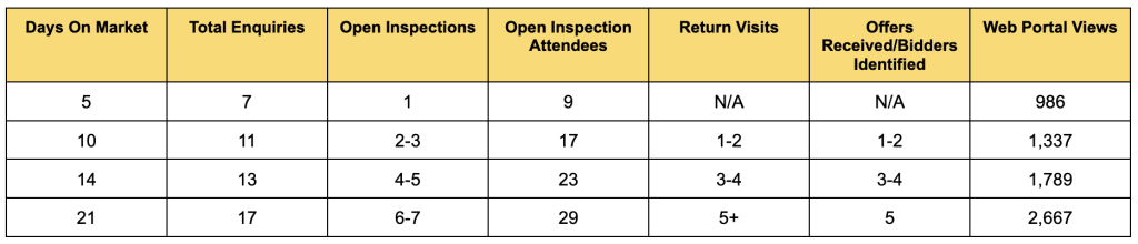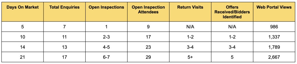 - Remember, the most engaged interest for your property is likely to occur in the first 7-14 days! This is our time to capture the interested buyer and get the best offer we can!